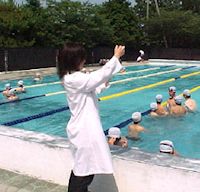 プールの水が安全であるかを、採水していろいろな検査をしています。