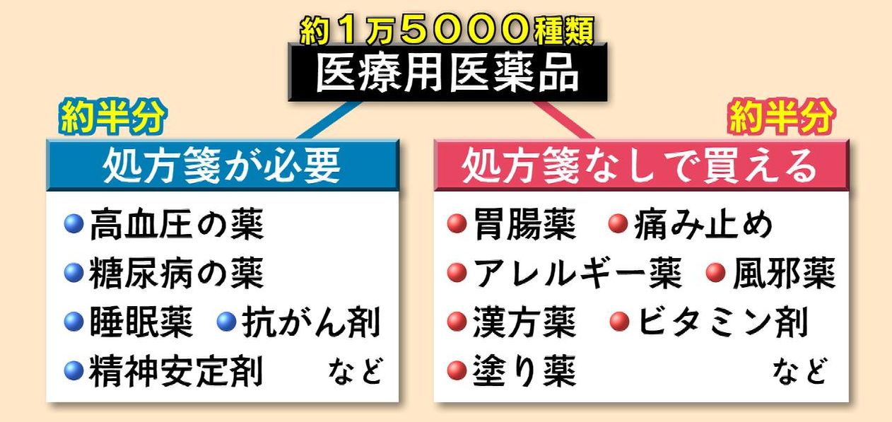 医薬品医療機器等法で処方箋が必須な「処方箋薬」は、全体の約3分の2にとどまります。